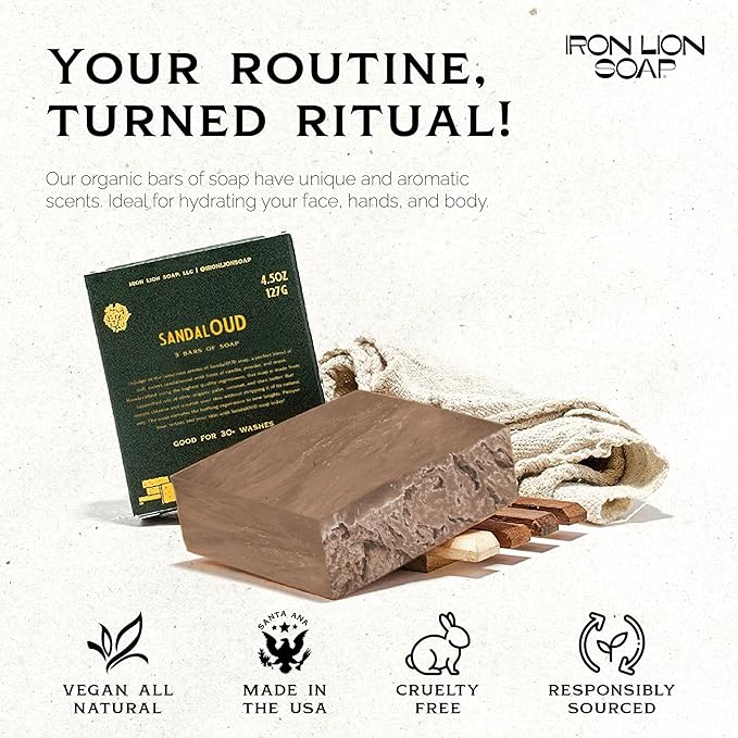 - SANDALOUD: Immerse yourself in the allure of this exotic and sensuous fragrance, characterized by rich notes of sandalwood and oud. Experience the indulgence of our sandalwood soap with luxuriously thick, creamy lather, leaving your skin feeling wonderfully moisturized.