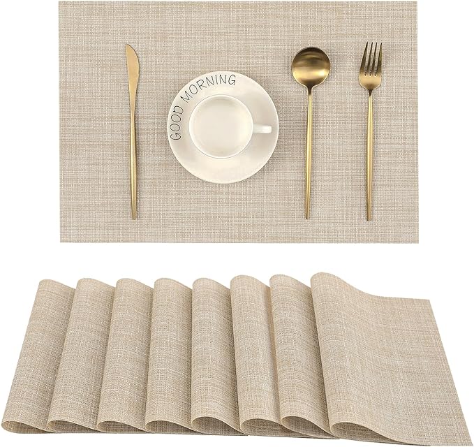Leetaltree Beige Placemats Set of 8 - Heat Resistant Non-Slip Place mats for Dining Table, Washable Durable PVC Vinyl Woven Table Mats(Beige, 8)