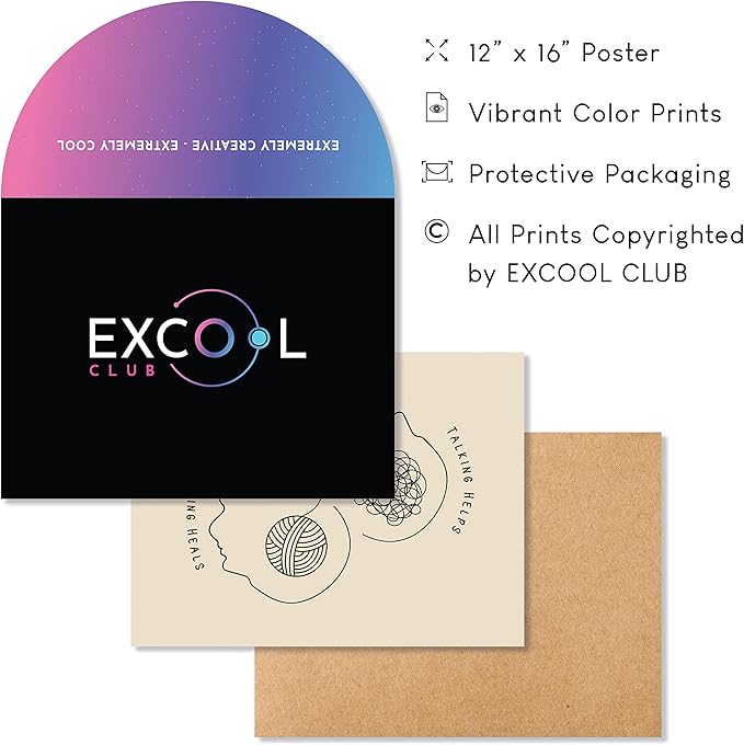 EXCOOL CLUB Therapy Office Decor Mental Health Posters - 12x16 Counseling Wall Art for Therapist Office, Boho Talking Helps Poster for School Counselors, Psychology Decor (UNFRAMED)