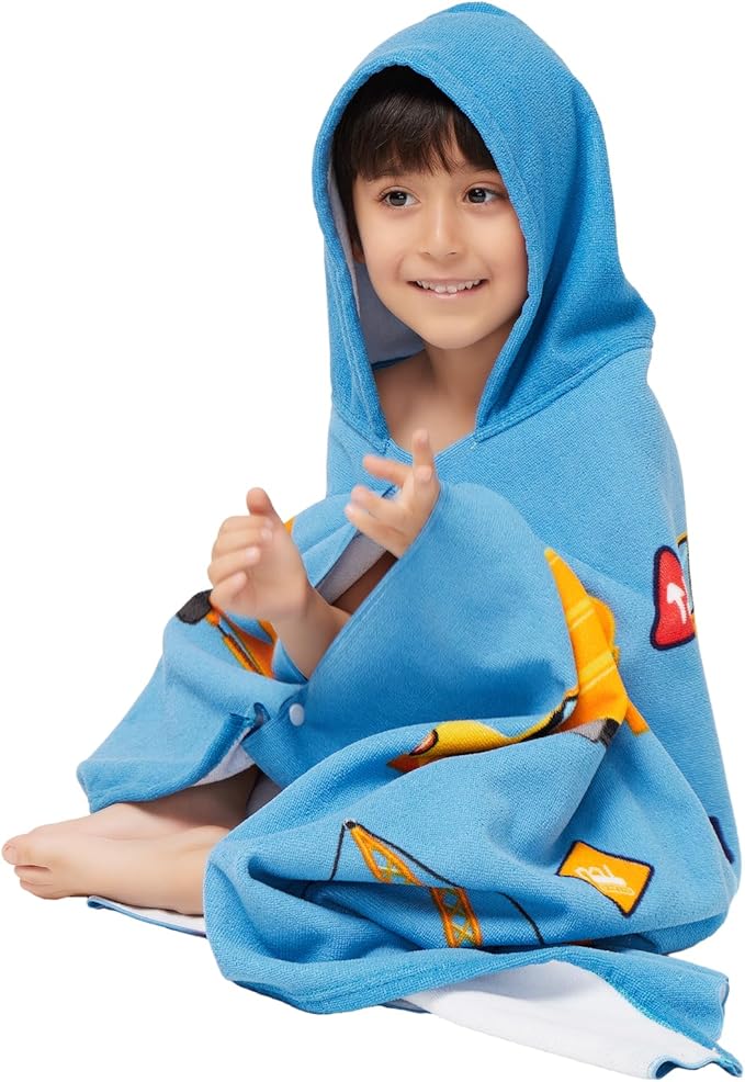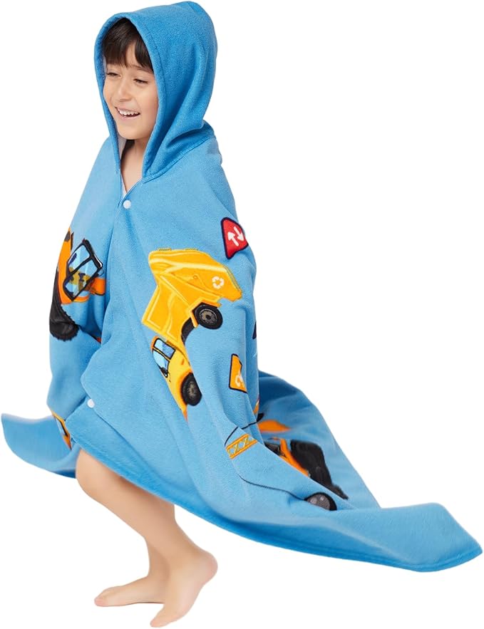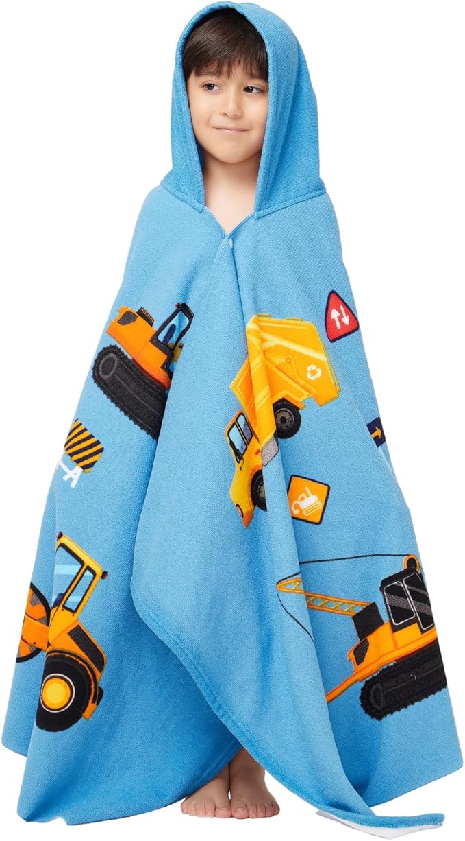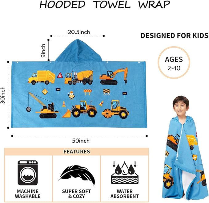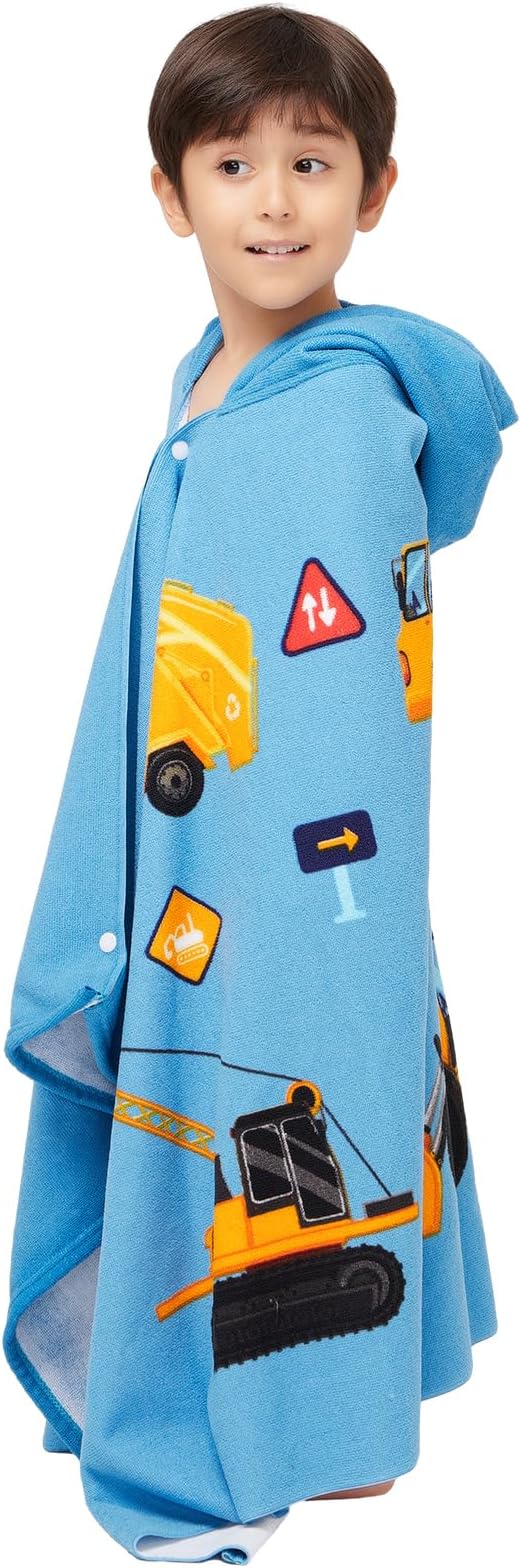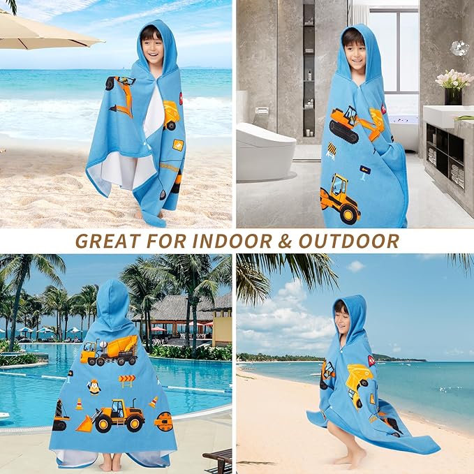 Hooded Towel for Toddlers 2-10 Years Boys Girls Kids Bath Pool Beach Towel Wrap Soft Absorbent Beach Poncho(Construction site)