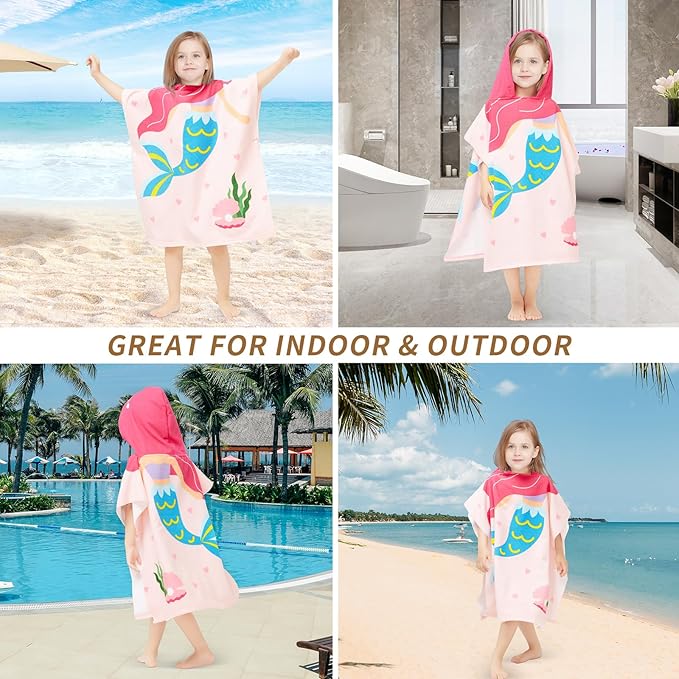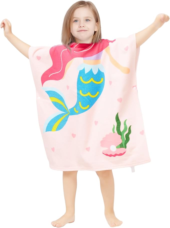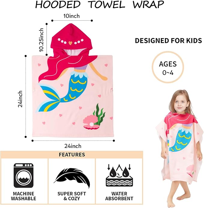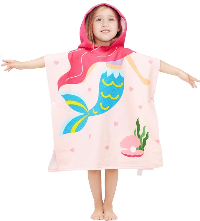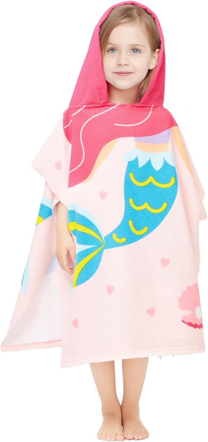 Hooded Towel for Toddlers 0-4 Years Boys Girls Kids Bath Pool Beach Towel Soft Absorbent Beach Poncho(Mermaid)