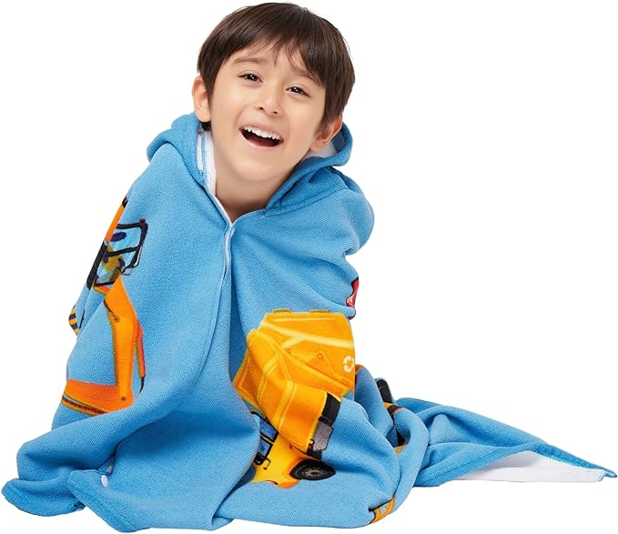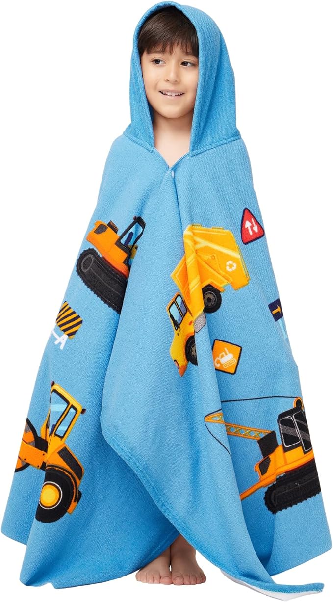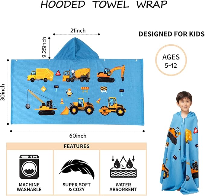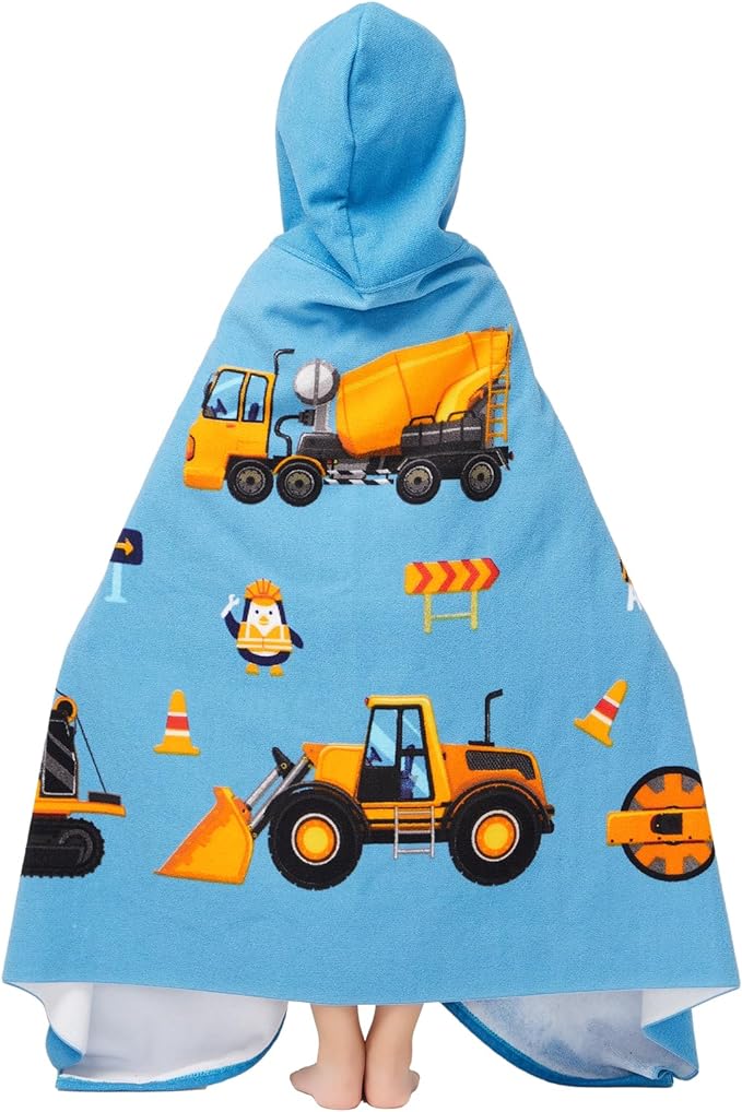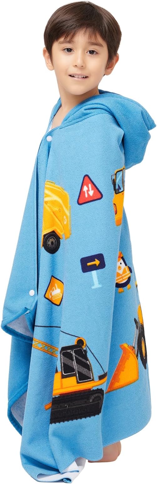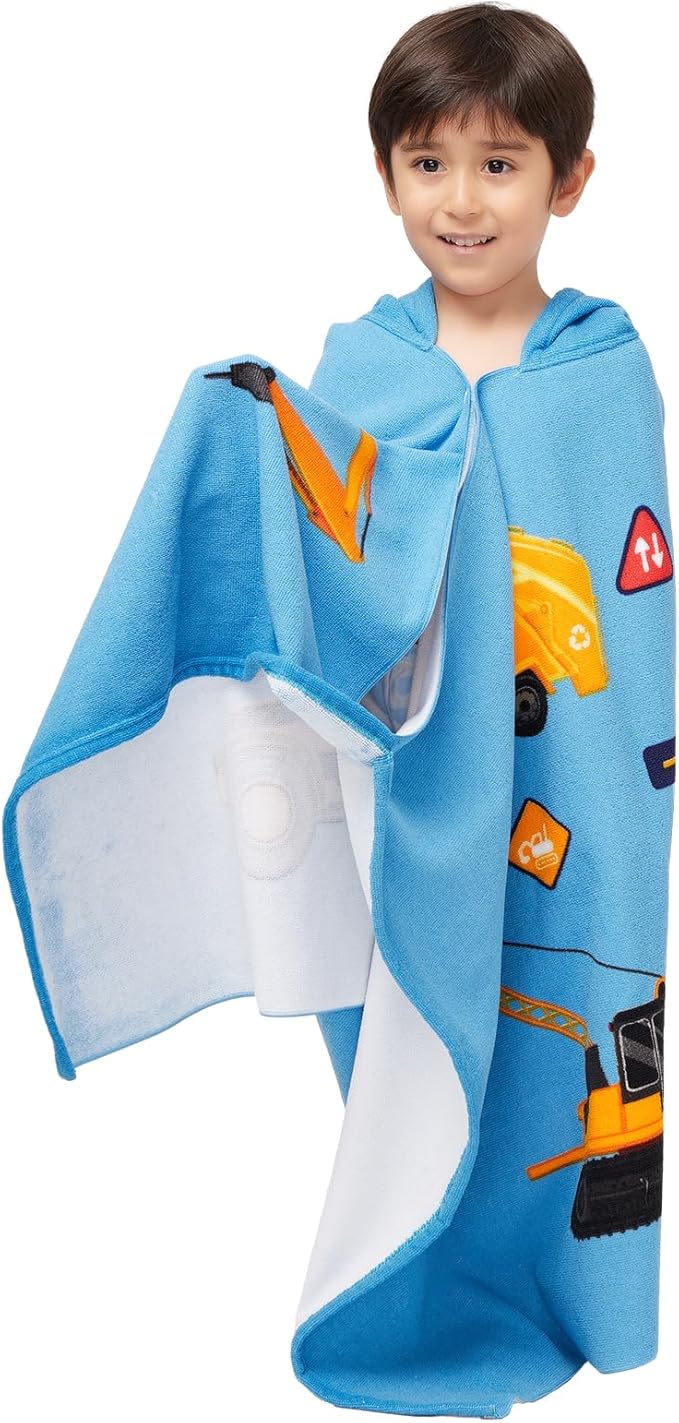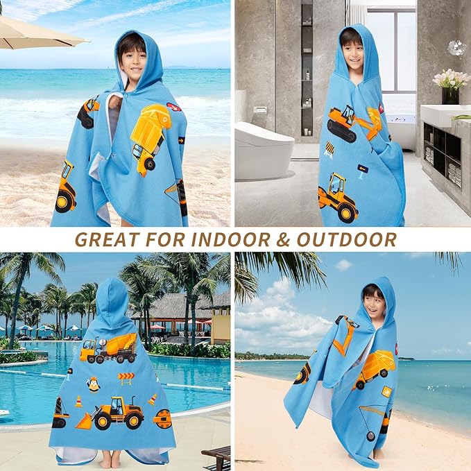 Hooded Towel for Toddlers 5-12 Years Boys Girls Kids Bath Pool Beach Towel Wrap Extra Large Soft Absorbent Beach Poncho(Construction site XL)