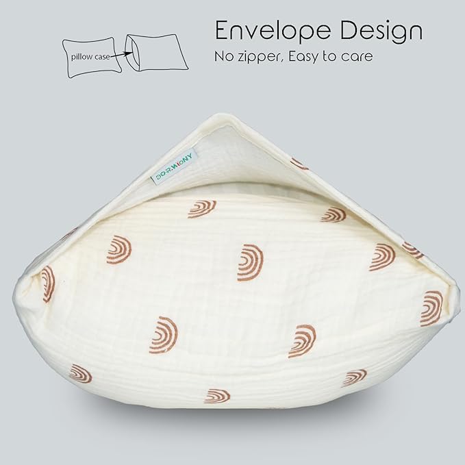 Organic Cotton Muslin Mini Pillowcases with Envelope Design,2 Pack Ultra Breathable Kids Toddler Pillowcases for Boys and Girls- 13 x 18 inches (Rainbow)