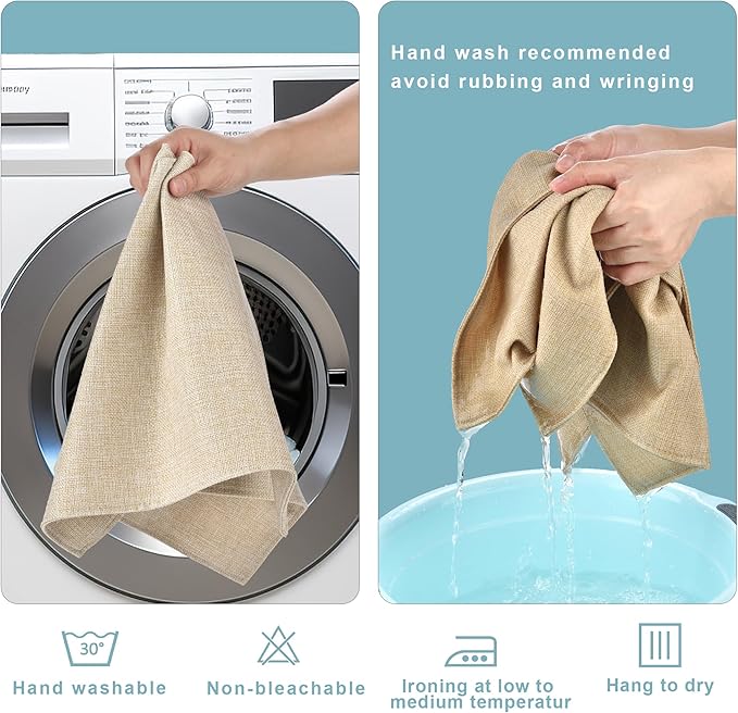 - Long-lasting - Faux linen material polyester fabric, they are a double layer of fairly thick and sturdy linen style placemats, well made the hemstitching is neat and even and there were no loose threads. These placemats are very hard-wearing, non-slip, no fading ,no staining and heat resistant, very safe to use. Size is 18x12 inch, hand cut, there may be 0.2inch error