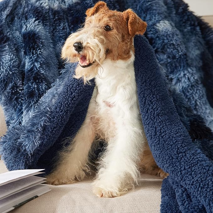 Bedsure Fluffy Tie Dye Navy Blue King Size Blanket for Bed, Thick Soft Sherpa Faux Fur Fleece Bedding Fuzzy Plush Winter Warm Heavy Oversize Large King Blanket, Cozy Blue Gifts for Men Women, 108x90