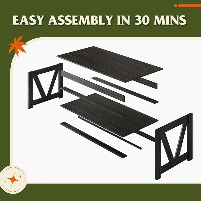 - Farmhouse Design: The wood grain table top creates the natural beauty of a rustic coffee table, and the V-shaped frame is more full of farm style, this center table can be the finishing touch of your living room, better decorating your living room, home office and Balcony.