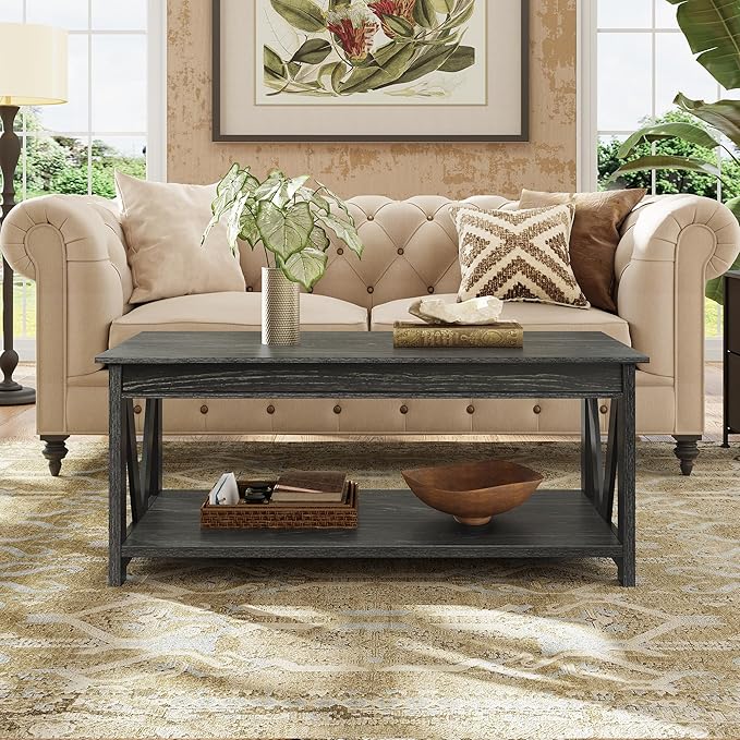 - Sturdy Durable: Coffee table for living room is built with thick solid wood boards and legs for lasting stability. This black coffee table features a scratch-resistant waterproof surface that maintains its polished look with easy cleaning