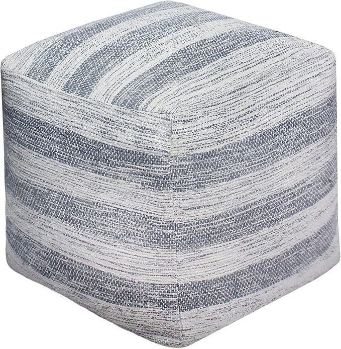 COTTON CRAFT Handwoven Stripe Dhurrie Pouf - Ottoman Foot Stool Bean Bag - Dorm Bedroom Home Décor Accent Seating - Boho Modern Comfortable Prefilled Cotton Pouf Footrest - 16 inch Square - Blue