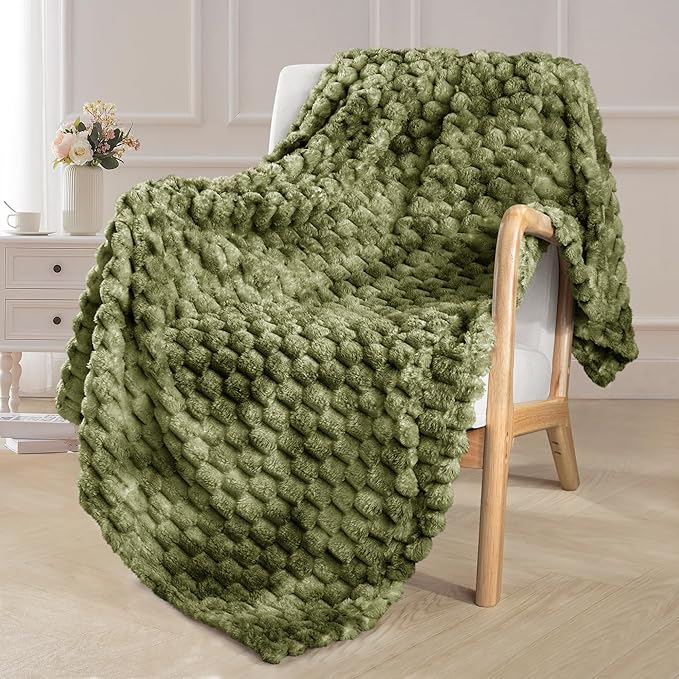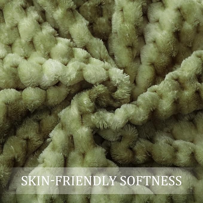 Exclusivo Mezcla Extra Large Soft Fleece Throw Blanket, 50x70 Inches Stylish Jacquard Throw Blanket for Couch, Fuzzy Cozy Lightweight for All Season, Tie-dye Olive Green