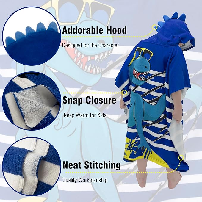 - ?Cute Giftable?The prints are so cute and versatile. The colors are vibrant. The hoods are designed for the character and can cover kids' heads well from feeling cold. The hood on it helps with drying kids' hair. This is a fun towel and very giftable.
