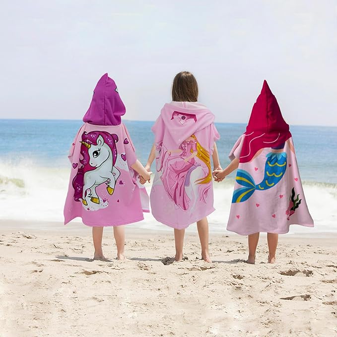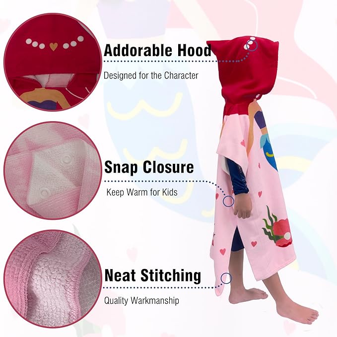 - ?Cute Giftable?The prints are so cute and versatile. The colors are vibrant. The hoods are designed for the character and can cover kids' heads well from feeling cold. The hood on it helps with drying kids' hair. This is a fun towel and very giftable.