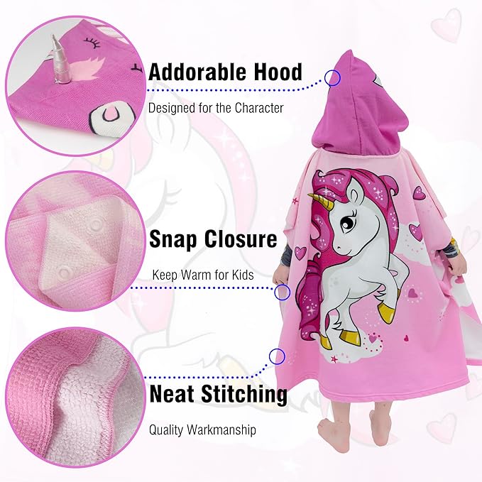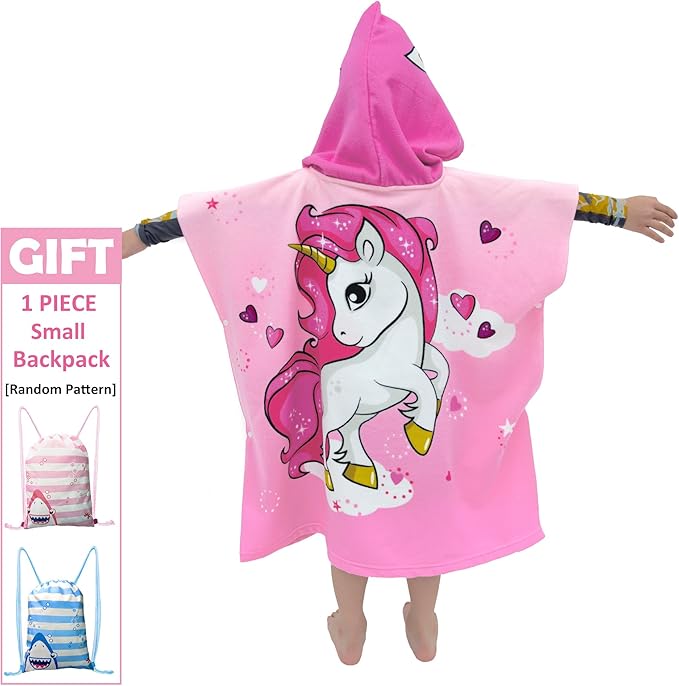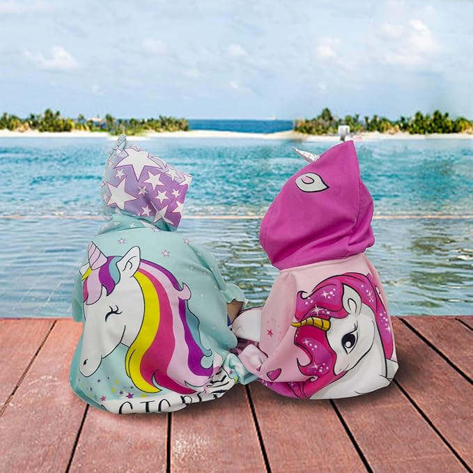Hooded Kids Beach Towels - Toddler Bath Towel Girls Boys Swim Cover-ups for Ages 4 to 10 Kids Pool Towels Quick Dry Lightweight Soft Microfiber Poncho 30x30 with Bag (Pink Unicorn)
