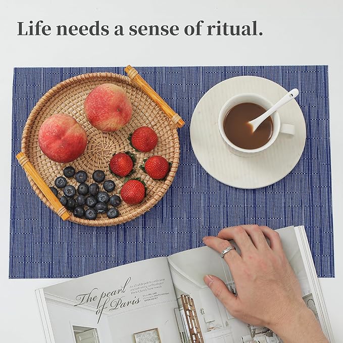 - Elegant and Practical Design: With a luxurious vinyl woven texture, precision cutting, and heat-trimmed edges, our double-sided placemats offer a sophisticated and practical solution. They provide a non-slip surface, resist fading, and are easy to clean, elevating your dining experience.