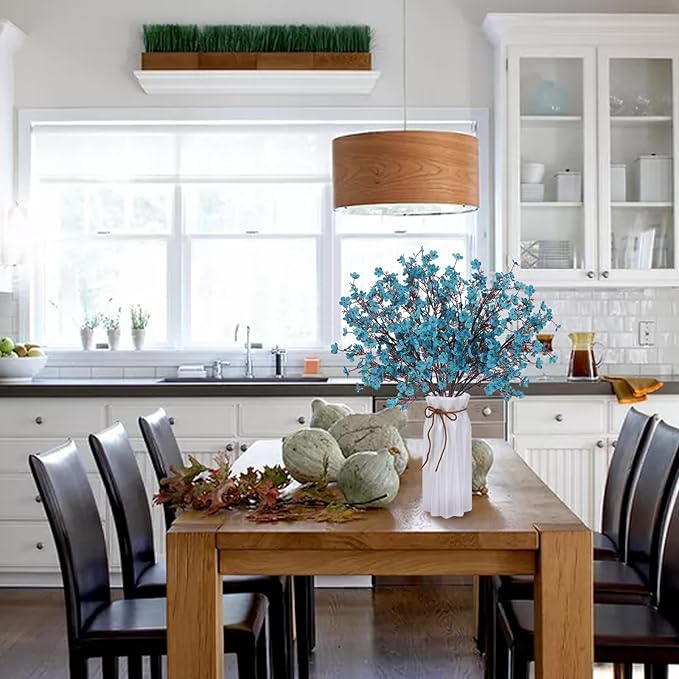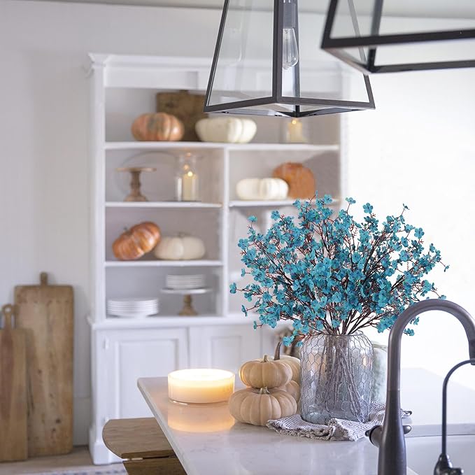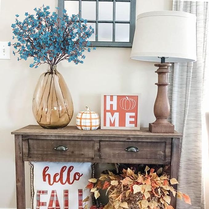 - Product Information: You will get 6 bundles of fake fall flowers per package without vase, artificial flowers centerpiece is 20 inches/51 cm in length, each branch has about 90 flower heads (Peacock Blue).