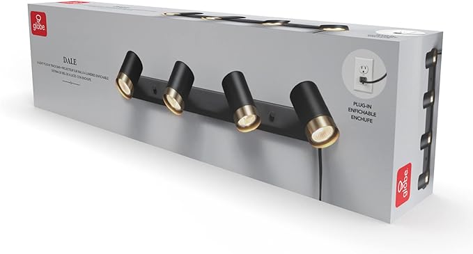 Globe Electric 64000047 4-Light Complete Track Lighting Kit with Pivoting Track Heads, Matte Black, Plug-in, Ceiling Light, Kitchen Light, GU10 Socket, LED Bulb Compatible