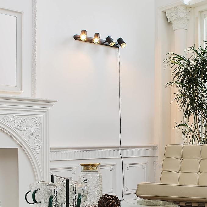 - MINIMALIST DESIGN: with conical pivoting track heads in a matte black finish with matte brass accents, the 4-Light Track Light showcases the perfect minimalist design for any room in your home