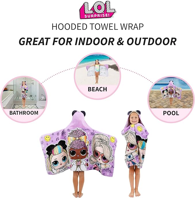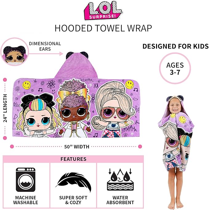 Franco LOL Surprise Kids Purple Queen Bath Beach Hooded Towel 24 in x 50 in