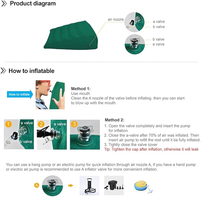 - The Inflatable Triangle Bed Wedge Pillow is a must-have for frequent travelers or for anyone in need of leg elevation, post-surgery or swelling relief.