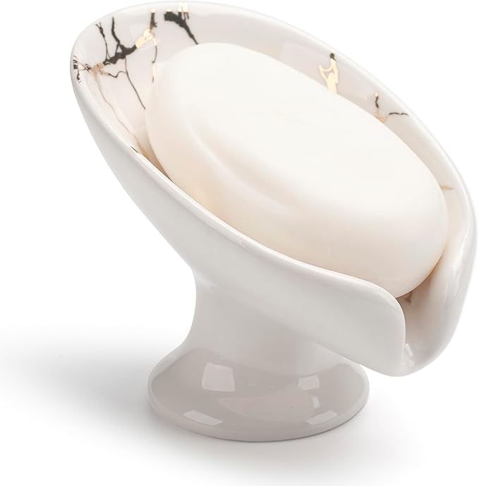 - Design: The ceramic soap dish is designed based on lotus leaves, simple and exquisite appearance, marble pattern on the surface makes the soap holder have modern, light luxury and advanced feeling, it has not only practicality and but also decoration, very suitable for your modern home.