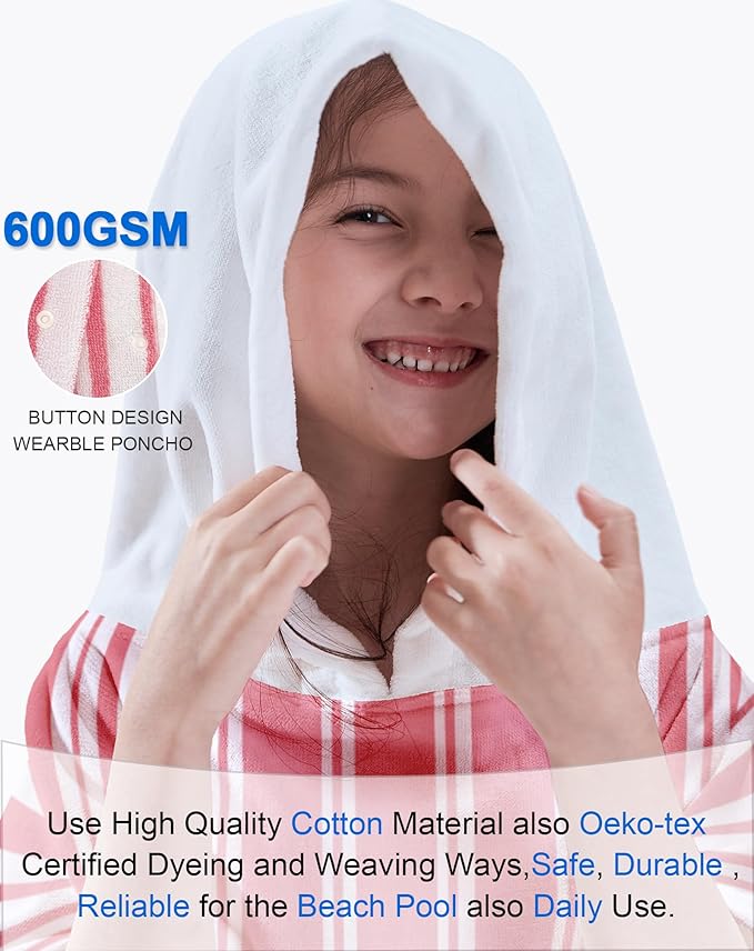 - Pure Cotton Comfort:Hooded Poncho Towel is Made of 100% soft cotton, Experience ultimate softness and comfort with our pure cotton poncho, Its gentle touch and plush texture provide a soothing and cozy sensation after swimming or bathing
