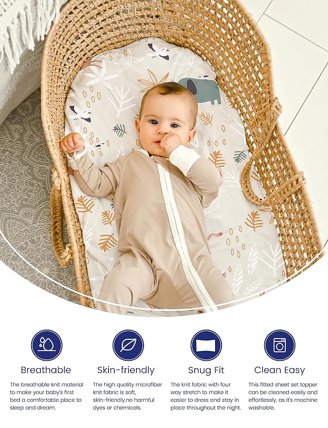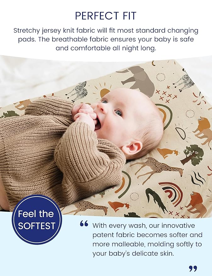 TotAha Premium Stretchy Jungle Animal Changing Pad Covers, Hypoallergenic Changing Table Cover, Silky Comfort, Buttery Soft, Calming Effect, All-Season Jersey-Knit 5'' Deep Pocket