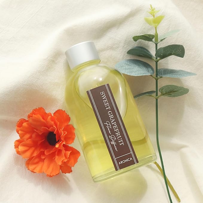 Aronica Grapefruit Reed Diffuser, Room Scent Diffuser with Red Flower, Difusor De Varillas, Aesthetic Room Decor, Apartment House Bathroom Essentials, Air Fresheners for Home Long Lasting