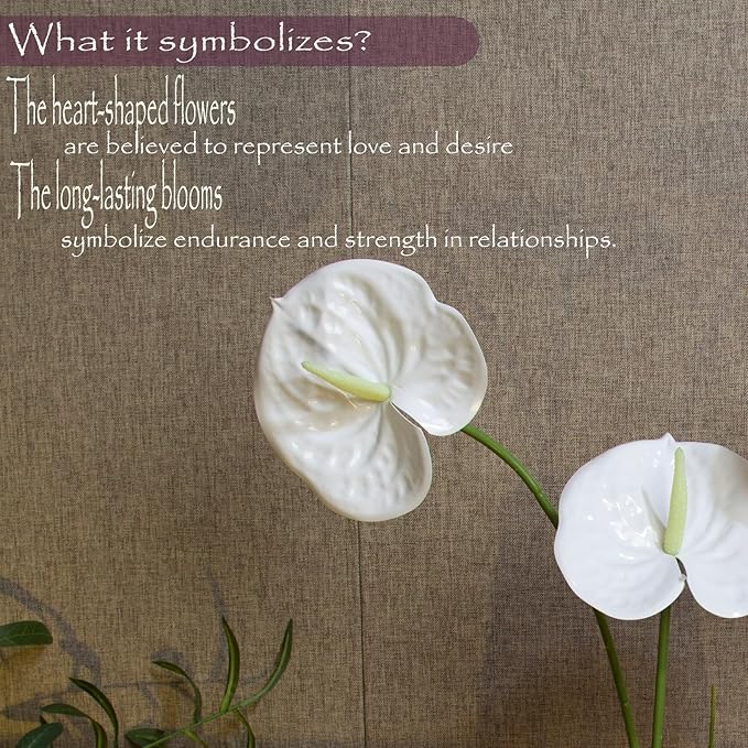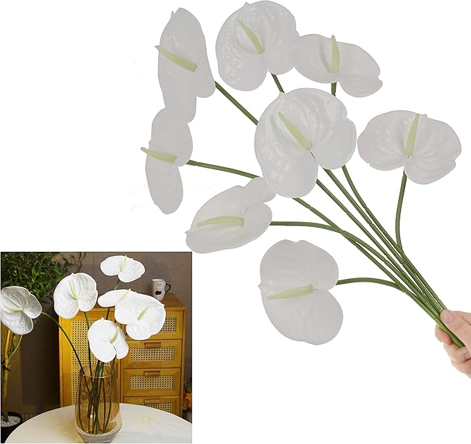 10pcs Artificial Anthurium,28 Inch Faux Tropical Plants Tailflowers,Realistic Flamingo Flower for Home Decor Centerpiece Wedding Bouquet Bonsai,White