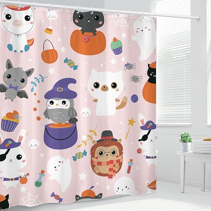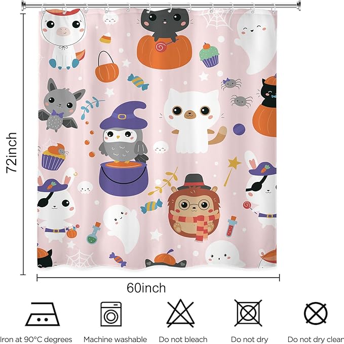 - 100% POLYESTER FABRIC - This cute animal Halloween shower curtain is made of polyester and the fabric is fast-drying and easy to wash. Size is 60 inch wide and 72 inch long.