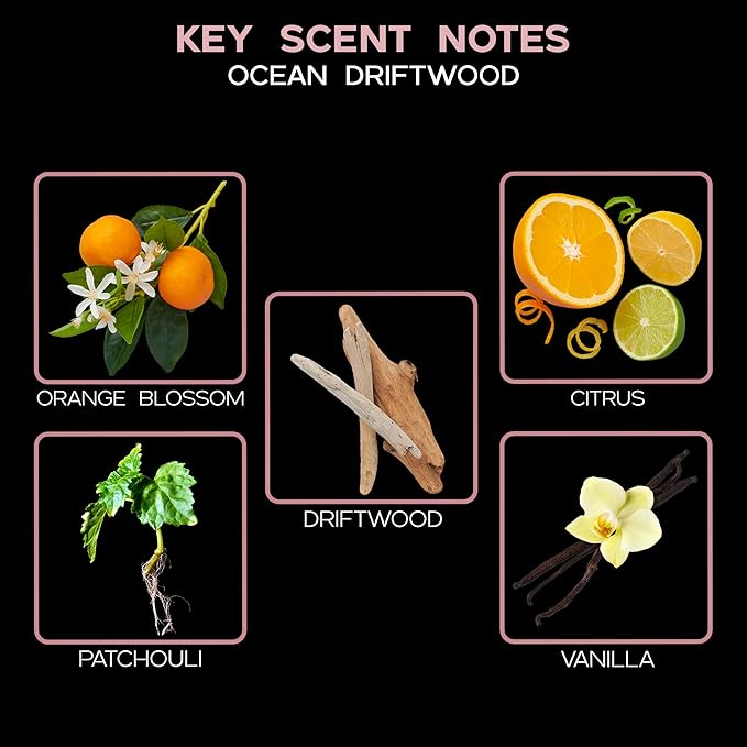 - π FRESH, VIBRANT & COASTAL β LOVSPA Ocean Driftwood captures a fresh seaside breeze featuring notes of Orange Blossom, Citrus, Cottonwood, Driftwood, Patchouli and a hint of Vanilla.
