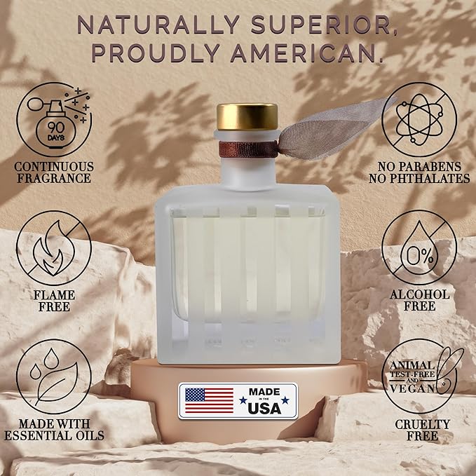 - 🪵 EASY TO USE – Just insert the reed sticks inside the diffuser bottle. Fragrance oil is gently diffused through natural sticks, giving any space a fresh, long-lasting, continuous scent into the air for over 120 days.