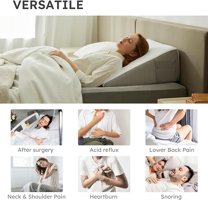 - 2 Pockets & Portable Design: Our triangle pillow wedge features two built-in pockets, ideal for storing remote controls, phones, or glasses. Additionally, its portable handle allows you to take it with you wherever you go for on-the-go comfort and support.
