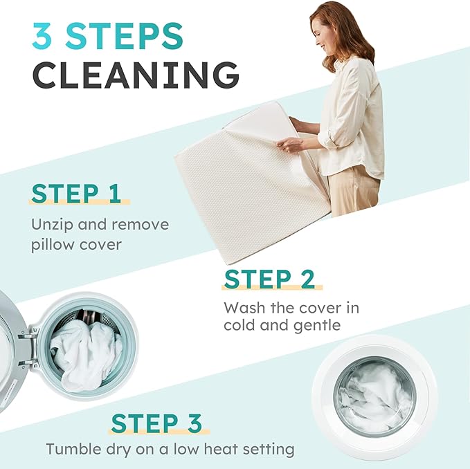- Breathable & Washable Cover: The pillow's breathable cover allows for optimal airflow, ensuring a cool and comfortable sleep experience. Plus, it's easily removable and machine washable for hassle-free maintenance.