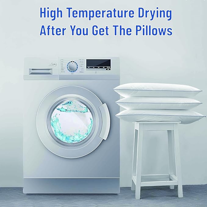 - WHAT YOU GET - 4 pack of full size comfy bed pillows. Gentle washing with cold water. Gentle temperature drying.