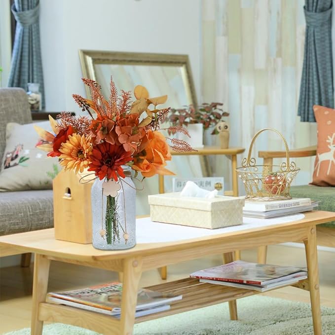 - Decoration: Fake rose bouquets in vase is suitable for dinning table, table centerpieces, living room, kitchen decoration.
