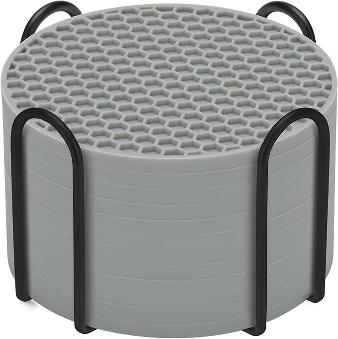 Silicone Coasters Set of 8 with Holder,Coasters for Drinks,Beer,Coffee Coasters,Suitable for Kinds Cups,Hot or Cold,Anti-SLI,Non-Stick,Anti-Overflow Tabletop Protection and Decor (12 Pcs, Gray)