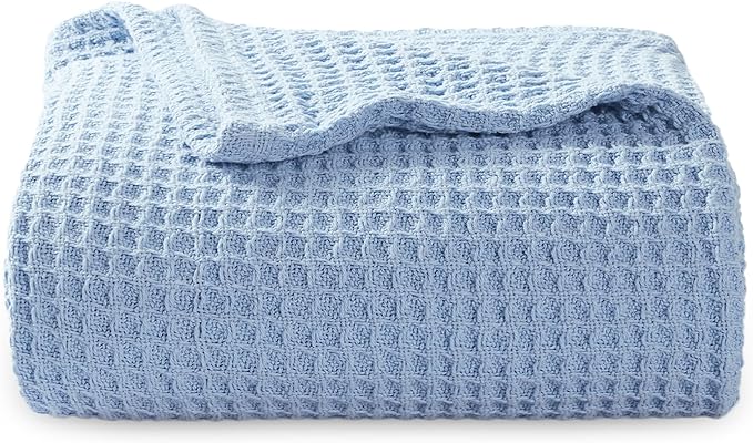 Bedsure 100% Cotton Large Throw Blanket for Couch 50x70 inches - Breathable and Soft, Waffle Weave Throw Blanket for Office, Sky Blue
