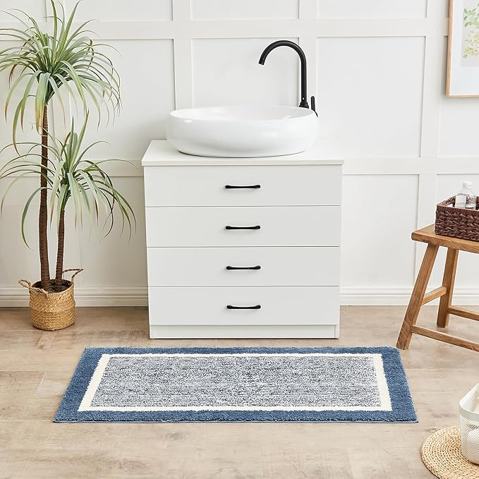 - 【Machine washable】This bathroom floor mats are machine washable with cold water and mild detergent (no chlorine or bleach) hang air dry. The Color will not fade and stay vibrant for years after washing it.