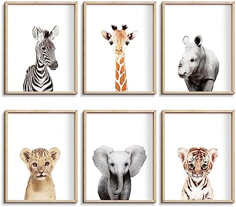 - 🎨[GET IT] - Set of 6 unframed jungle safari animal prints, Our minimalist animal prints are set against a bright white background and are playful yet sophisticated wall art addition to a child’s bedroom, nursery, or great for a safari themed birthday party