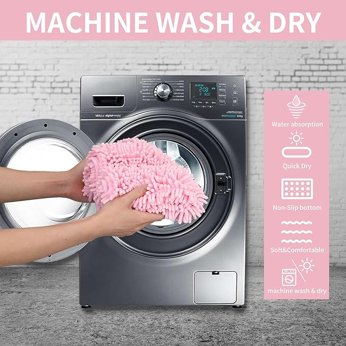 ZiYiJuan Bathroom Rugs, Super Absorbent Luxury Shaggy Chenille Bath Mats, Durable (Pink, 20x32+20x32(in)