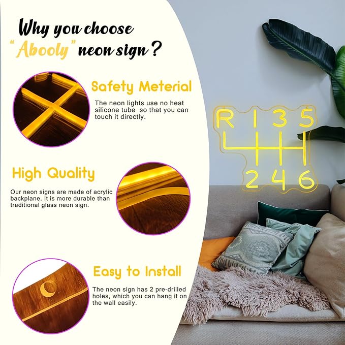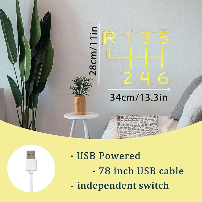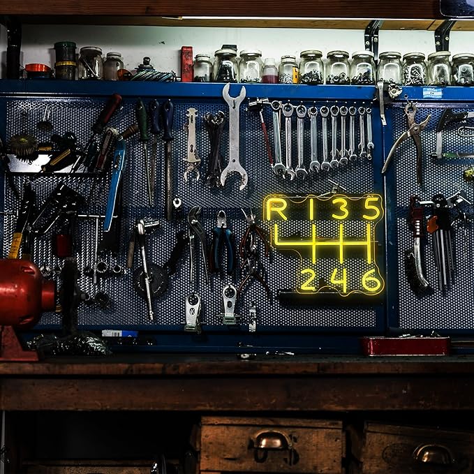 - Special Design:The car gearbox neon sign easily make your garage the most epic entertainment center with this car accessories shaped neon sign that instantly transforms your space and make you happy. It makes the perfect addition to your game room decor and brings a cool touch of color that will make your buddies envious