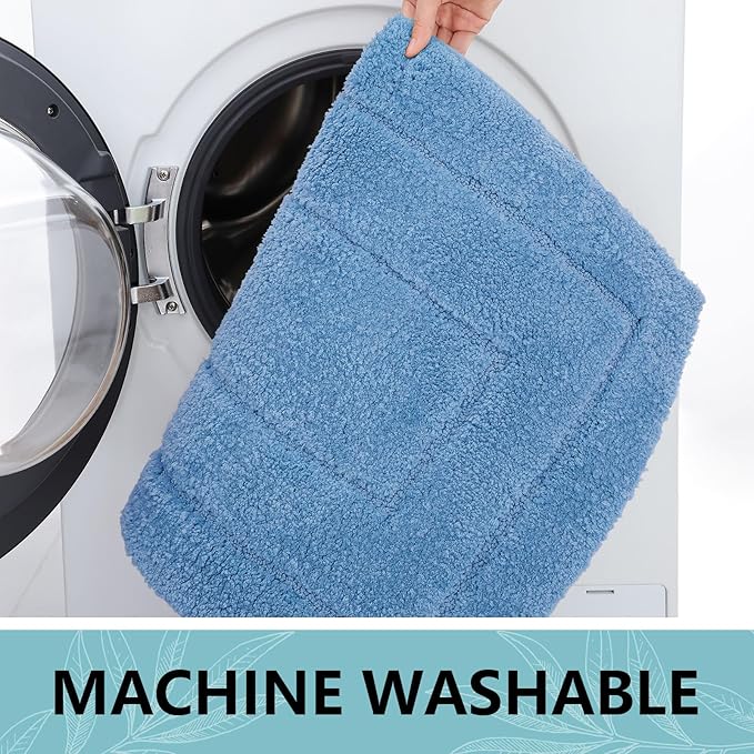Buganda Bathroom Rugs, 47" x 24", Soft and Absorbent Microfiber Bath Rugs, Non-Slip Shaggy Shower Carpet, Machine Wash Dry Bath Mats for Bathroom Floor, Tub and Shower, Blue