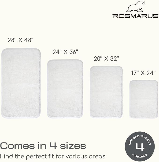 ROSMARUS Shaggy Bath Rugs for Bathroom Non Slip 20" X 32", Water Absorbent Bath Mat, Soft Shower Mat for Floor & Tub, Fluffy Plush Rug Machine Washable, White