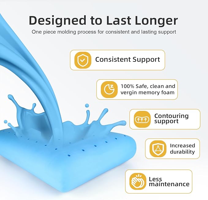 - Comfort: We work to design the best pillow that can achieve an awesome balance between soft and supportive. The bed pillows queen size set of 2 adopts ventilated memory foam that molds to keep your neck and head properly aligned. Besides, the queen pillow can keep its shape and won't go flat over time so that you don't need to adjust it every time you sleep.
