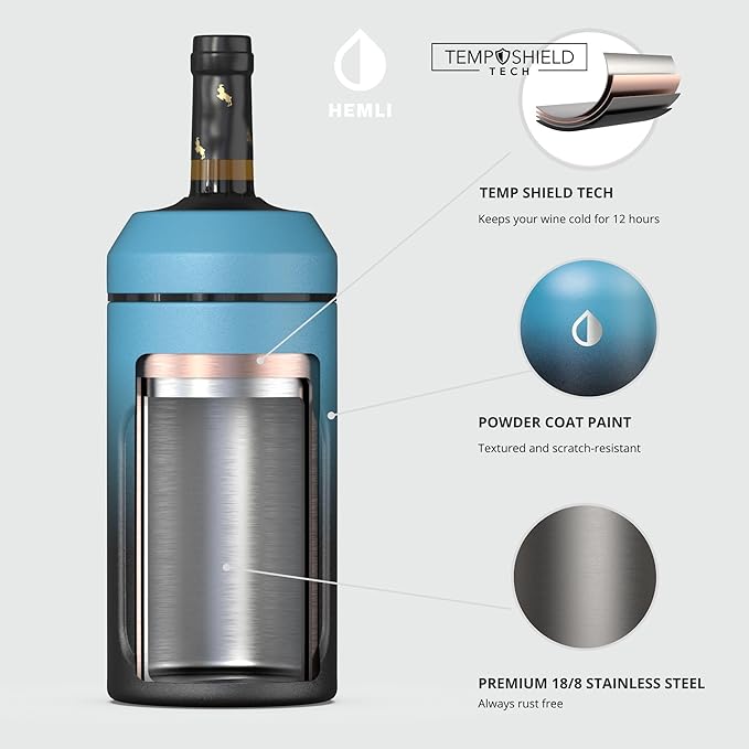 - Our double walled vacuum sealed wine chiller sleeve and wine cooler holder offers an ergonomic body design that is lightweight, easy to carry, and a breeze to pour from. The durable powder-coat paint is textured and scratch resistant.