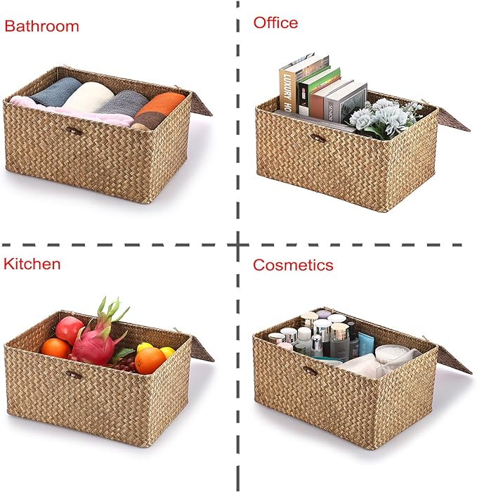 - Keep your Place Tidy and Neat - Use these baskets to keep your small items organized to reduce clutter,everything is easy to find.The lid help to hide all clutter inside,the make your messy place look nice and tidy