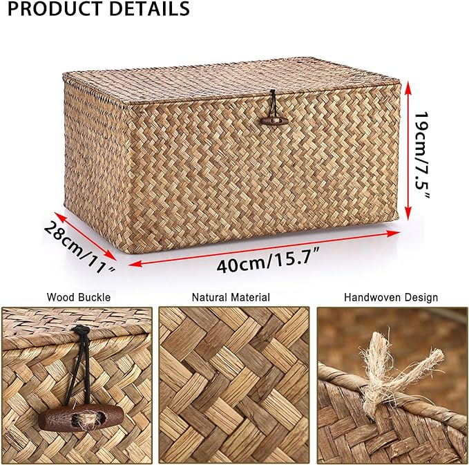 - Product Info - Size(LxWxH): 15.7"x 11"x 7.5". Package Included: 1x Handwoven Basket Box (Accessories are not included)
