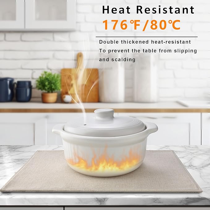 - Heat Resistant - These placemats can be used at a temperature of 100 degrees. They can prevent the table from slipping and scalding. To put on top of a dining table, a sewing machine, a chest of drawers, and a dresser the placemats look really nice on top of them