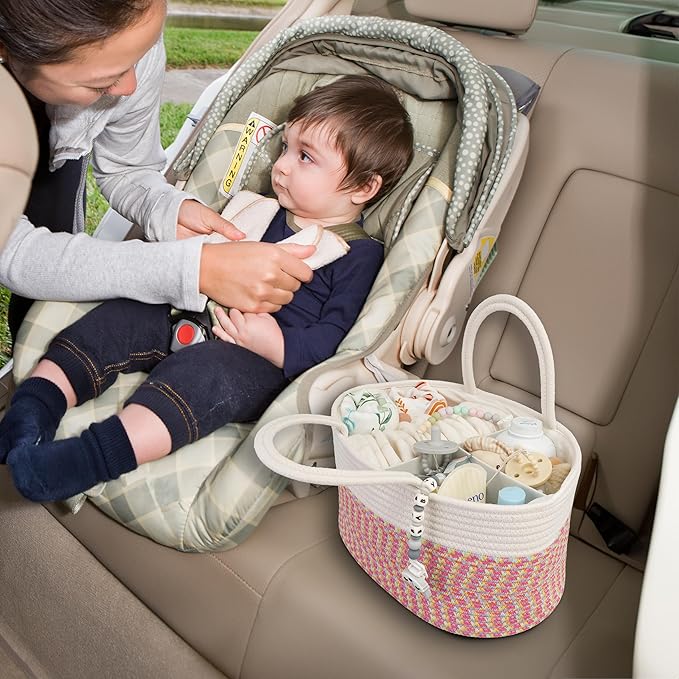Large Baby Diaper Caddy Organizer for Girl Boy Rope Nursery Storage Bin Basket Portable Holder Tote Bag for Changing Table Car Travel Baby Shower Gifts Newborn Registry Must Haves