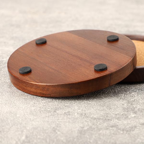 - Absorbent Coasters - WLWNWFT wood cork coasters feature an absorbent cork on the inside, which provides a highly insulating surface to protect your table from marks or drops of moisture. NOTE- No coaster can absorb large amounts of water, only condensation from the walls of the cup.