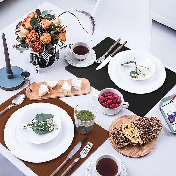 - Multiple Use & Gift-These placemats are suitable for indoor and outdoor dining experiences. Perfect for picnics,parties,dinners,offices,holiday gatherings etc. They are thick, soft, long-lasting, and reversible for extended use. Protect the table top surface and reduces noise from plates and flatware.Not only for your own usage, but these placemats can also be gifted to others on various occasions